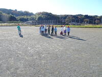 面積の大きさを表す1aを体感していました。1辺が10mの正方形が1aとなります。グラウンドにラインを引いてみました。思ったより大きくてびっくりしていました。