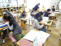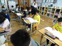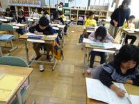 物語文を要約しています。キーワードを確認して、その言葉がしっかり入るように要約文を書いていました。鉛筆がノートを走る音が響いて、集中して書いていることが分かりました。
