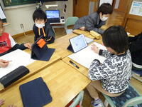 職業についてインタビューしてきたないようを発表します。どのようなインタビューができたか、友達と確認していました。