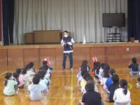 校長からは、「訓練を積み重ねることで、いざというときに自分を守る行動につながる」というお話がありました。子どもたちは、うなずいたり、返事をしながら聞いていました。