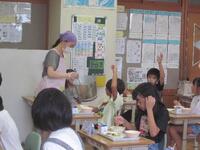 配膳が終わるころになると、栄養士が各教室をまわっていきます。