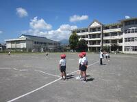 体育の授業では、友達との距離が十分に保つことができて、お話をしない場合などには、マスクを外して活動するというような熱中症対策を講じています。子どもたちは、感染症対策と併せて、自分のからだを自分でも守れるよう努めています。