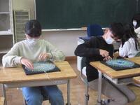 夢中になって糸をかける子どもたちです。糸をかける場所を数えながら取り組んでいるので、教室では数をつぶやく子どもたちの声がしています。