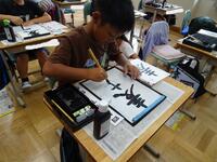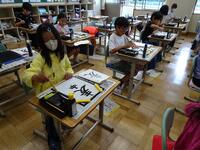 「麦」という字に挑戦していました。右払いと左払いのバランスが難しい字ですね。