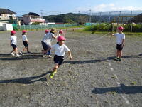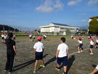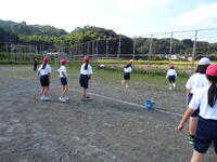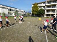 体力アップコンテストの種目に学年ごと挑戦しています。記録が伸びた学級もありました。