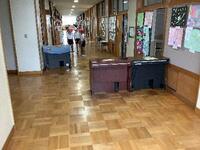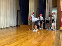 3,4年生が体育の時間に、さのっ子ゴルフに挑戦しました。新聞紙を使ってクラブとボールを作り、カップを目指して進めていきます。体育館や教室、廊下などにコースを設置し、楽しく取り組んでいました。
