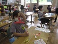 「かわいい、人魚みたいになったよ」「お面みたいでおもしろいでしょ」「三角に折った方が、面白い形になるよ」と夢中になって取り組みました。完成した折り紙を、友達に見せ「すてきでしょ!」「かっこいいでしょ!」と交流するすがたも見られました。