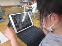 1年生が、授業の中でタブレット端末を使う練習を始めています。