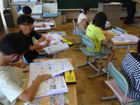 3年生の国語です。子供たちは一生懸命に登場人物の心情の変化が分かる根拠を見付けようとしていました。