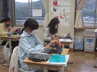 「しおりを見ながら書くと、書きやすいよ」「なかなか書きたいことがまとまらないよ」と、文字を入力している子どもたちです。