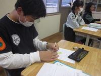 今日は、1組・2組ともに卒業アルバムに載せる言葉を、毛筆で練習しました。
