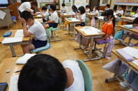 新しい漢字を習っています。縦画、横画の書き順に気を付けながらドリルに書き込んで行きます。