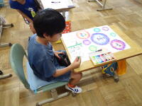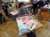 先日描いたシャボン玉の中に、家族や友達の絵を入れていきます。とっても素敵な作品に仕上がりそうです。