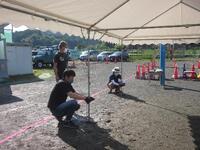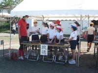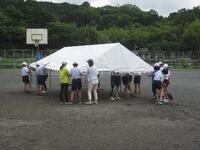 子どもたちの登校前には、PTAとおやじの会の方々がテント設営をしてくださいました。応援席には熱中症対策用のテントを、準備していただきました。