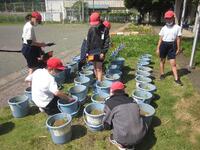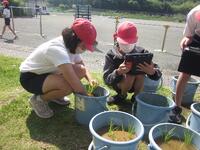 今日は、一人ずつバケツを用意し、稲を植えていきました。これから秋まで、育ち方を観察しながら、育てていきます。どんな風に生長していくのか、楽しみですね。