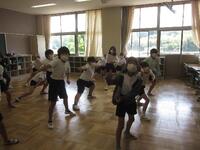 15分休みになると、「ソーラン、ソーラン」と、元気なかけ声が聞こえてきました。声のする教室を探してみると、4年生が、運動会に向けてソーラン節の自主練習に取り組んでいました。