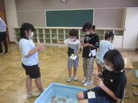 「すっきりすると気持ちいいね」「こんなにごみがついているんだね」など、近くの友達と気付いたことを交流するすがたも見られました。
