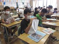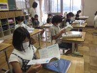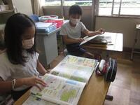 5年生の教室では、夏休みの宿題を集めていました。また、夏休み前に借りた本を、図書室に返却しました。