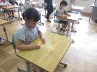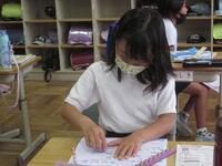 4年生の教室でも、夏休みの宿題を確認していました。