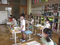 3年生の教室では、夏の思い出を語り合うようすが見られました。
