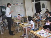 ALTの発音を聞いた後、子どもたちも発音練習をしていきます。ALTが提示するカードを見ながら、流暢な発音になるよう子どもたちも真剣です。