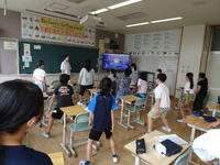 リズムに合わせて体を動かして、チャンツを行いました。今日は、特任指導主事の参観もありました。