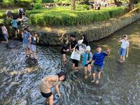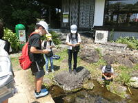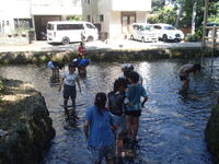 今日は、川の水位も下がったので、川に入って水生生物を探しました。