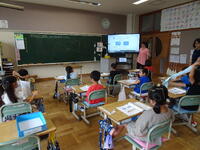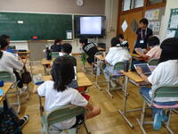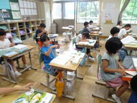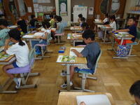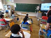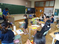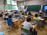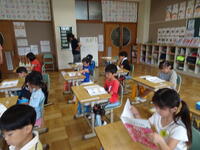 1年生の算数です。今日は様々な絵が用意されていて、絵からイメージを浮かべて問題を作ります。