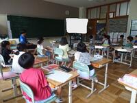 新出漢字を覚えていきます。代表者の指示に従って、指書き、空書き、なぞり書きと進めて行きます。