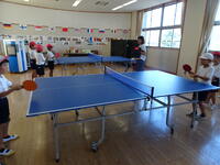 卓球を体験しています。交代しながら楽しんでいました。