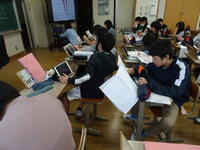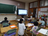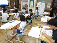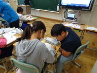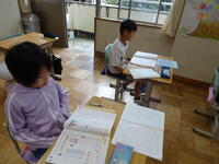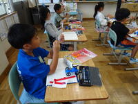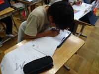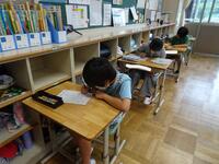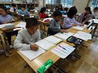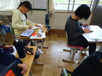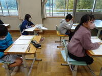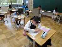 漢字テストに集中して取り組んでいます。とめ、はね、はらいに気を付けて丁寧に漢字を書いていました。