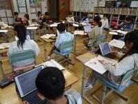 計算のきまりの問題を解いています。友達に教わったり、先生に教わったり、自分で進めたり、友達と協力して解いていったりと、自分の学びに合わせたやり方で進めています。