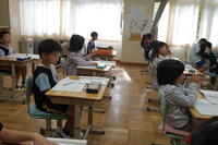 「たずねびと」という物語文を使って学習をしていました。登場人物の心情が表れている部分にサイドラインを引きながら読み解いていきます。