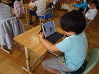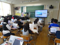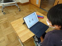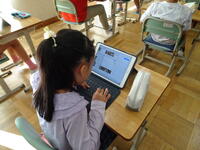 卒業式で歌う合唱曲の候補曲を聴いていました。曲の様子や感じたことをタブレットに書き込んでいます。