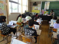 英文を書いて、ALTにチェックをしてもらいます。見本を参考に、英文を作っていました。