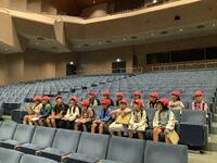 楽器を演奏している自分を版画にします。版木に下描きをしてペンで太くして掘り残す部分を作っていきます。