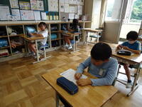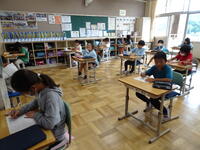 授業のはじめに、漢字の小テストに挑戦します。小テストを繰り返すことにより、漢字の定着を図ります。