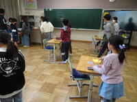 本番前最後の全校一斉学活では、当日のリハーサルやお店のレイアウトの確認などを行いました。