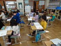 詩を使って擬声語や擬音語について学んでいました。オノマトペが入るとリズムが出たり、イメージが膨らんだりしますね。
