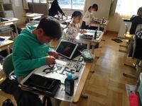 色板を敷き詰めて、形を作っていきます。お魚や車などができていました。できたかたちをタブレットで撮影です。1年生もタブレットを勉強道具としてしっかり使うことができています。