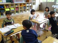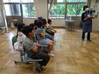 ちょうど、「かえるのがっしょう」を鍵盤ハーモニカで演奏していました。輪唱するように、チームに分かれて演奏していました。