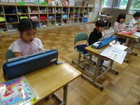 テーマに沿った本をたくさん読み聞かせしていただきました。子供たちは目を輝かせて聞いていました。
