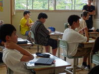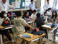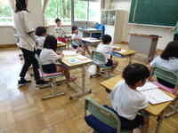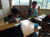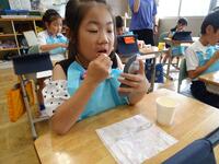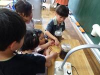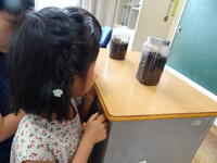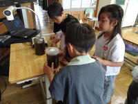 今日はカブトムシの幼虫が教室に登場しました。瓶の側面から見えるように育てているので、幼虫が動いている様子がよく分かり、歓声をあげていました。