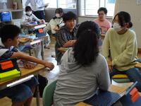 弥生時代のむらの様子から、当時の生活を考えます。むらの周りに堀ができた理由を話し合いながら考えていました。