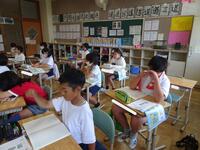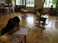 「角」の単元テストに挑戦していました。分度器を使って測ったり、作図をしたりと丁寧さが必要なテストですね。