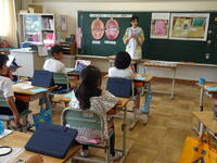 健康づくり課の方を講師にお招きし、3年生で健口教室を行いました。