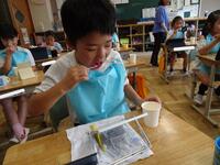 裁縫に使う糸を針に通して、玉結びを作る練習をしていました。毎年のことですが、玉結びがなかなか上手くできなくて、悪戦苦闘する子が出てきます。お家で練習してみてはいかがでしょうか。