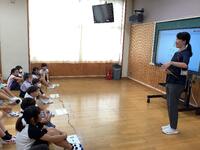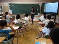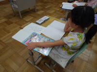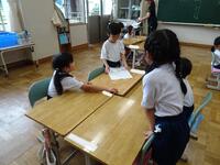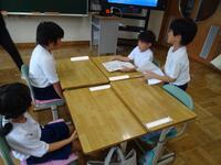 夏休みに書いた絵日記を使って、発表をしていました。お話の内容に合わせて、友達が質問したり、質問に答えたりしていました。