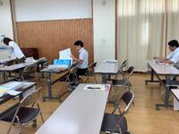 いよいよ測定開始。4月よりどれくらい伸びたでしょうか。待っている間に、保健指導の感想を書いていました。