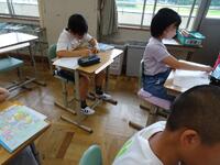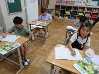 夏休みに学習してきたことを確認するプリントに挑戦したり、夏休みのできごとをタブレットにまとめて発表したり、漢字の練習をしたりと、どのクラスも集中して取り組んでいました。素晴らしいですね。